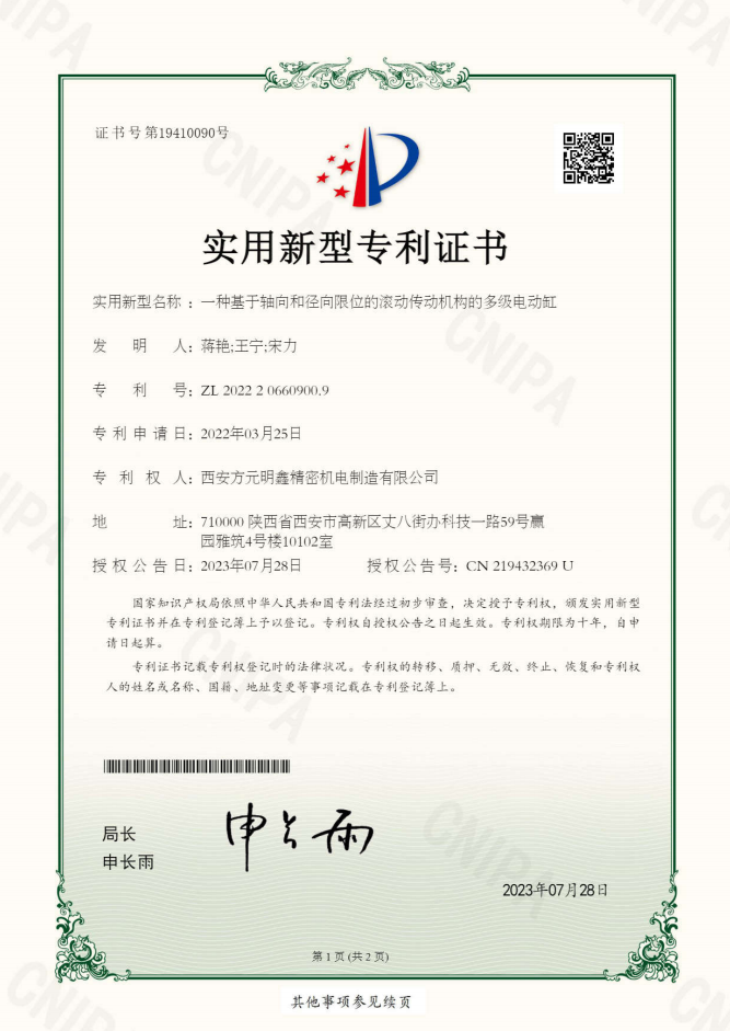 一种基于轴向和径向限位的滚动传动机构的多级电动缸。